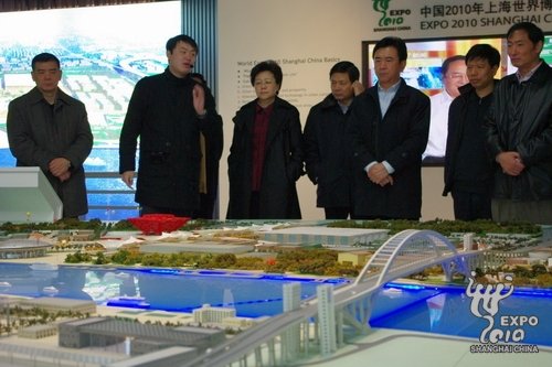 民政部副部長姜力一行在上海世博局副局長蔡放鳴陪同下參觀世博會規(guī)劃展示廳