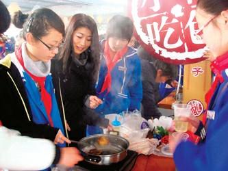 記者昨天在黃渡中學藝術節上看到,學生們自己采寫編印的世博小報,內容豐富、版面生動活潑。最搶人眼球的是“世博菜”烹飪大賽。只見學生和家長們組成幾十對“大菜師傅”圍著長桌一字擺開,他們拿著自己帶來的菜,有的煎炒、有的蒸煮、有的做成湯料,各自使出了全部看家本領。一位陸姓同學的爸爸說:“世博會離我們越來越近了,我們全家人也要操練操練,屆時外國朋友到上海來,我們要燒出好吃的嘉定地方菜讓他們嘗嘗……”