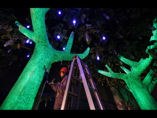 中國館“東方足跡”核心展區制作“發光樹”。