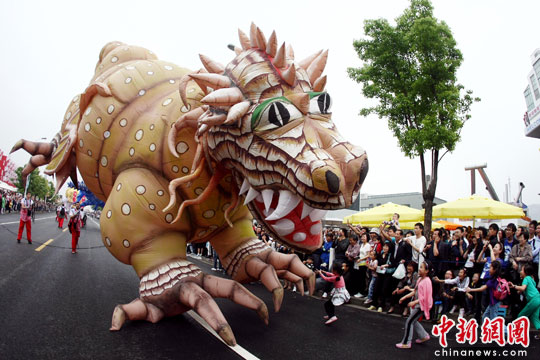 5月22日,上海世博會波蘭國家館日的活動中,一場“波蘭龍的巡游”,成為世博園最新亮點。波蘭和中國一樣,對龍有著特殊的崇拜。中新社發 杜洋 攝