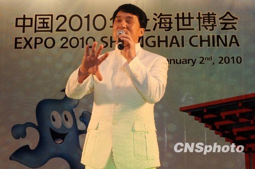 資料圖:當地時間2010年1月2日,上海世博會美國推介活動在加州帕薩迪納市開幕。著名影星、上海世博會形象大使成龍在推介會上演唱歌曲,宣傳推廣上海世博會,邀請美國朋友屆時參加世博會。 中新社發 張煒 攝
