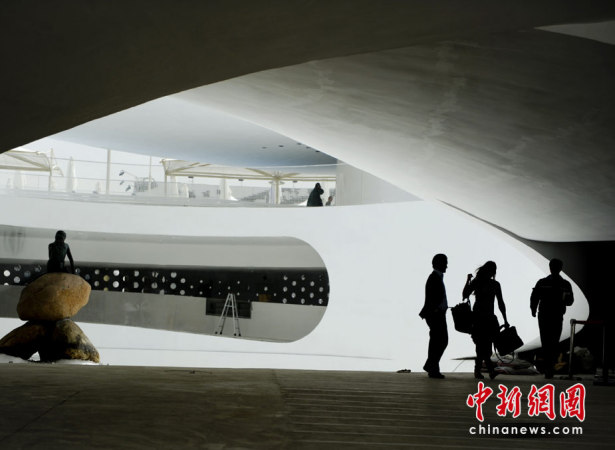 4月27日,一位女士走過(guò)上海世博園芬蘭館的圓形天井。中新社發(fā) 廖攀 攝