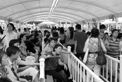 這兩天,記者在世博園區看到,一些熱門場館前排隊時間大大減少。 “大約排隊兩三個小時……”昨天中午,當一群學生模樣的游客聽到日本館(網上日本館)排隊處工作人員這句話,欣喜萬分, “原本聽說起碼要排5個小時,想不到今天只要一半時間,賺了。”