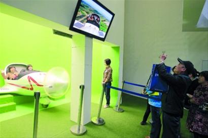 捷克館稱得上“兒童樂(lè)園”,模擬開(kāi)飛機(jī)最受孩子們的歡迎。在模擬飛行中,駕駛艙里的人可以通過(guò)方向的調(diào)控,從空中領(lǐng)略捷克的自然美景和歷史古跡,機(jī)艙內(nèi)的一舉一動(dòng)也通過(guò)攝像頭顯示在飛機(jī)前方的大屏幕上。