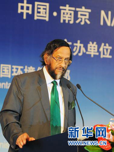 7月3日,2007年諾貝爾和平獎得主、政府間氣候變化專門委員會主席、印度能源和資源研究所所長拉金德拉·帕喬里在論壇上演講。新華社記者 陳琪攝