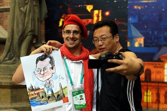 不僅僅如此,布拉格主題日的文藝表演以及慶祝活動貫穿全天,向游客展示了歐洲歷史、建筑、文化中心——布拉格抵御自然災害的能力。此外,幸運的觀眾還可以擁有一幅漫畫自畫像,擅長簡單素描的捷克插畫家現場作畫,自畫像總是能突出每個人最鮮明的特點,令參觀者驚喜連連。(鄒娟)