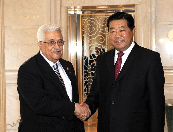 5月1日,中共中央政治局常委、全國政協主席賈慶林在上海會見前來出席上海世博會開幕式的巴勒斯坦國總統、民族權力機構主席阿巴斯。新華社記者李學仁攝