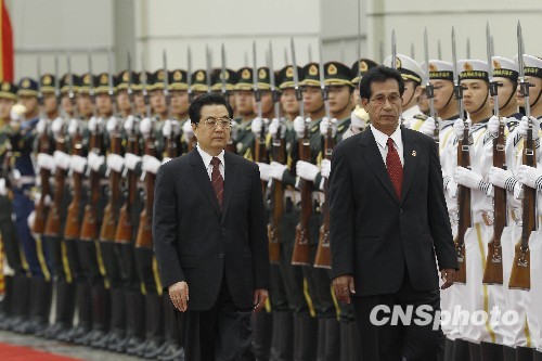 2010年5月2日,中國國家主席胡錦濤在上海舉行儀式,歡迎密克羅尼西亞總統莫里。 中新社發 盛佳鵬 攝