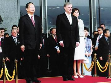 儀式前,中外雙方舉行了會談。霍斯特·克勒在俞正聲陪同下出席了升旗儀式。隨后,雙方來到世博軸一號陽光谷出席慶祝活動,并觀看了充滿濃郁德國氣息的文藝演出。