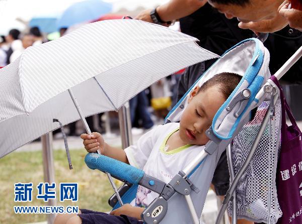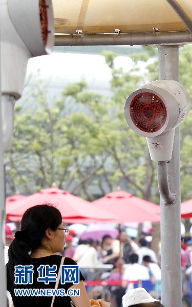 當(dāng)日,上海結(jié)束連日陰雨,氣溫迅速攀升。上海中心氣象臺(tái)發(fā)布高溫黃色預(yù)警,預(yù)計(jì)當(dāng)日上海最高氣溫將升至35℃左右,提示市民做好防暑降溫措施。在世博園內(nèi),除了常設(shè)的遮陽棚、遮陽傘和噴霧裝置外,游客們也通過多種方式加強(qiáng)自身防護(hù),健康觀博。 新華社記者劉穎攝