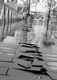 難道這兩天世博園內(nèi)游客數(shù)量太多,木質(zhì)廊橋已不堪重負(fù)?還是前一陣上海的陽(yáng)光太毒辣,把地板都“曬傷”了。望著“七翹八裂”的廊橋,很多游客臉上都寫滿了疑問,有些人還猜測(cè),是不是廊橋用了質(zhì)量不過關(guān)的板材,所以僅用了兩個(gè)多月地板就已經(jīng)“傷痕累累”。