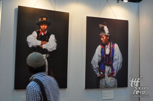圖片展現場,陳列著十余幅神態各異、栩栩如生的人像作品。這些圖片中的主人公來自世界各地,雖然有著不同的膚色和表情,但都身著波蘭各地區極富民族特色的服裝。通過光影的完美演繹和主人公不同神態的烘托,整組作品極富畫面感,不僅讓觀眾看到了波蘭文藝開放的一面,更讓觀眾加深對波蘭文化和藝術本質的理解。