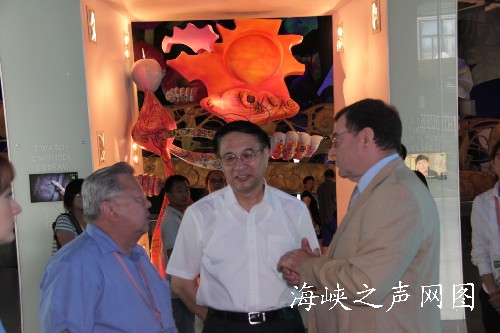 2010年世博會俄羅斯區總代表弗拉基米爾·斯特拉什科為他講述了俄羅斯館的設計理念及其在世博會的運作情況,并且為貴賓們介紹了即將到來的9月28日俄羅斯館國家館日的準備情況。