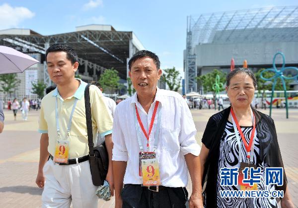 9月18日,楊開(kāi)慧烈士的侄孫楊修(中)在浦西園區(qū)參觀。當(dāng)日,由民政部?jī)?yōu)撫安置局、上海市民政局和上海市擁軍優(yōu)屬基金會(huì)聯(lián)合主辦的全國(guó)百名著名烈士家屬代表看世博活動(dòng)在世博園區(qū)啟動(dòng),共有來(lái)自全國(guó)25個(gè)省市自治區(qū)的百名著名烈士家屬代表參加。新華社記者 凡軍 攝