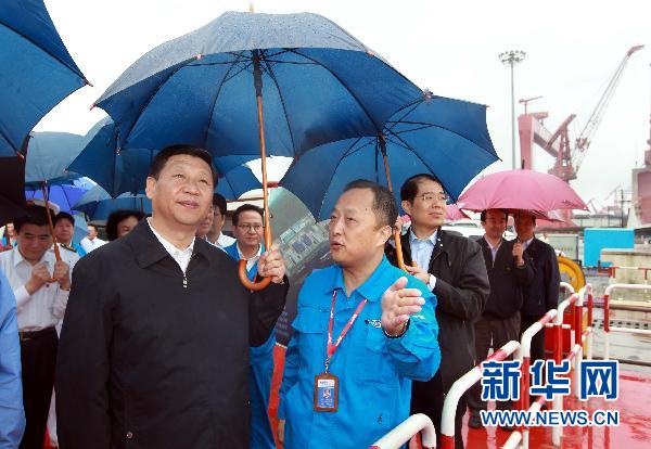 這是9月26日,習(xí)近平考察中船江南長(zhǎng)興造船基地,聽取船舶設(shè)計(jì)生產(chǎn)和自主研發(fā)等情況介紹。 新華社記者劉衛(wèi)兵攝