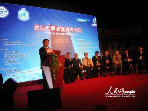 為促進低碳節能,共建和諧世界,推動世界的和平與發展,同時用文化交流宣傳和諧世界理念,以獨特的主題節目形態弘揚中華文化,謳歌世界和平與發展的大趨勢,展示中國敞開胸懷與世界相融合的新境界,頌揚聯合國60年來為世界和平與發展所作出的巨大貢獻及取得的偉大成就,紀念活動辦得豐富多彩,生動活潑、雅俗共賞。全天的紀念活動共分四大版塊。一是舉辦了“首屆世界和諧城市論壇”,來自聯合國、中國各地的官員和專家就如何加強和諧世界建設進行了熱烈討論;二是舉行了“世界低碳日”發起儀式,第一次由我國民間組織向聯合國提出設立“世界低碳日”;三是舉行了“世界和諧城市標準草案”提交儀式,由世界和諧基金會主席劉藩將我國學者起草的“世界和諧城市標準草案”提交給了聯合國人居署官員,中國幸福研究院院長徐景安就《世界和諧城市標準》 草案作了說明;四是舉行了盛大的文藝演出,《夢想之旅》藝術團的部分演員和靜安區青少年活動中心的《新蕾合唱團》的小朋友跳起了《低碳之舞》,著名歌唱家胡曉晴演唱了《和諧之歌》,曾得到奧斯卡音樂獎提名的尤雁子演唱了《地球,美麗家園》,中國乃至世界上小有名氣的邁克爾.杰克遜的模仿秀演員邁克爾.王杰進行了表演,“田震”也到現場助陣。會上,全體人員唱起了生日歌,祝福聯合國65華誕、祝福聯合國千年發展目標10周年。會上還播放了聯合國秘書長潘基文題詞的照片,并給以純集團等頒發了“世界優秀和諧企業”,郭東林等頒發了“世界友好和諧使者”。整個活動在《和諧世界》全場互動的歌聲中圓滿結束。