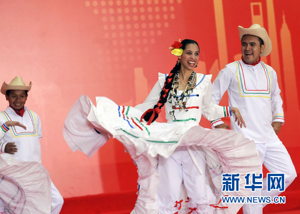 2010年10月27日 上海世博會迎來洪都拉斯國家館日 10月27日,洪都拉斯演員在國家館日儀式上表演舞蹈。當日,上海世博會迎來洪都拉斯國家館日。 新華社記者劉穎攝