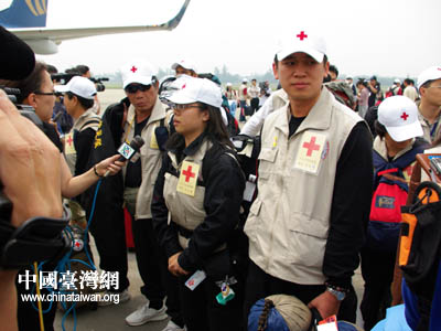 20日下午,臺灣紅十字組織醫療隊帶約3噸醫療用品等物資前往廣漢市,21日在高坪鎮,23日在體育場救災點設立醫療救護站,展開救護服務。救護站設有中、西醫。從21日至24日共計診治476名。對數十名老弱災民進行體檢,做了一臺氣胸手術、兩個骨折手術。和一個頭皮縫合小手術。內、外科,兒科,針灸,急處方發藥點。巴蜀音像制作中心 蘭志泉 攝