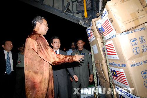 新華網吉隆坡6月9日電(記者 熊平)馬來西亞政府向中國四川地震災區捐助的首批物資9日晚從吉隆坡附近的梳邦空軍基地起程,運往四川地震災區。