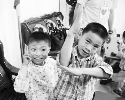 與親人失散的兩名災區兒童在四川梓潼縣某兒童福利院里玩耍。新華社記者 楊金志攝