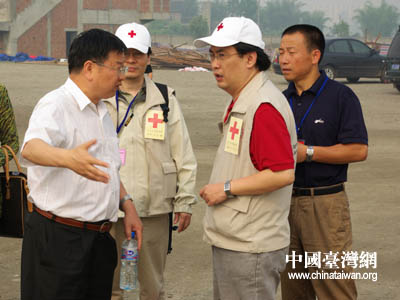 20日下午,臺灣紅十字組織醫療隊帶約3噸醫療用品等物資前往廣漢市,21日在高坪鎮,23日在體育場救災點設立醫療救護站,展開救護服務。救護站設有中、西醫。從21日至24日共計診治476名。對數十名老弱災民進行體檢,做了一臺氣胸手術、兩個骨折手術。和一個頭皮縫合小手術。內、外科,兒科,針灸,急處方發藥點。巴蜀音像制作中心 蘭志泉 攝