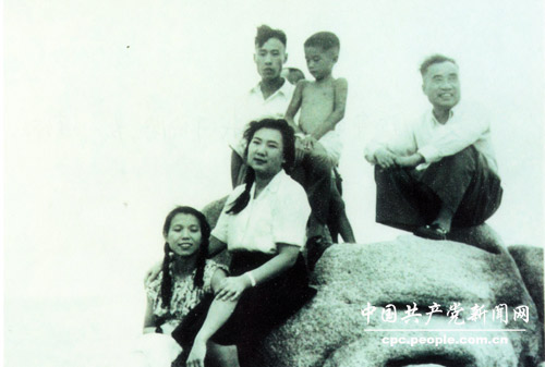 1950年,朱德一家在北戴河海濱