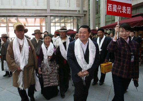 新華網快訊:出席黨的十七大的西藏代表團12日10時25分乘飛機抵達首都國際機場,成為第一個抵達北京的京外代表團。
