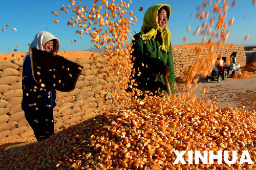 這是在寧夏紅寺堡一處糧食收購點(diǎn),兩位婦女正在堆放玉米(2006年11月10日攝)。2006年秋季,寧夏引黃灌區(qū)玉米、小麥、水稻三大作物喜獲豐收。新華社發(fā)