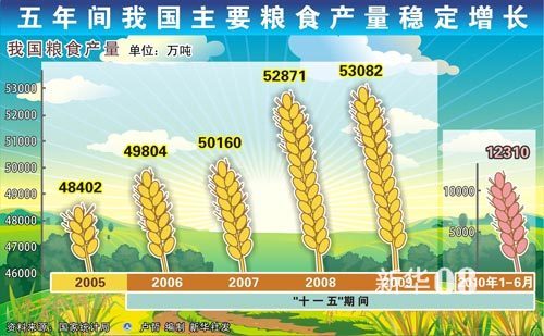 新華社圖表,北京,2010年10月11日圖表:五年間我國主要糧食產量穩定增長 新華社發