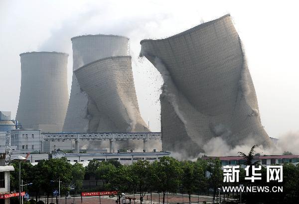 9月16日,浙江電廠爆破90米巨型冷卻塔。華能長興電廠在8月份關(guān)停了兩臺(tái)125兆瓦級的發(fā)電機(jī)組,這兩臺(tái)發(fā)電機(jī)組已經(jīng)工作18年。舊機(jī)組關(guān)停后,每年可節(jié)約標(biāo)準(zhǔn)煤50多萬噸,減少二氧化硫排放1000多噸,減少粉塵排放300噸左右。 新華社記者徐昱攝