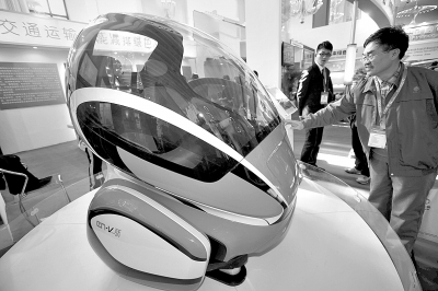 11月24日,參觀者在綠博會上觀看電動聯網概念車。新華社發(陳曉根攝)
