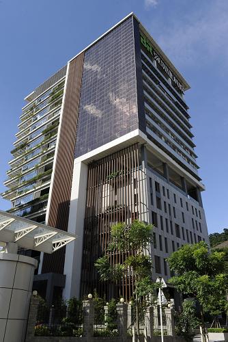 綠色、低碳的建科大樓外墻是光電板,太陽(yáng)能能提供大樓30%的用電量(8月18日攝)。