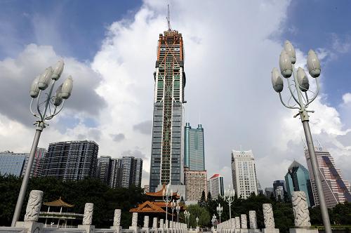 建設(shè)中的深圳市京基金融中心高度將到達(dá)439米,是深圳未來(lái)的地標(biāo)(8月17日攝)。