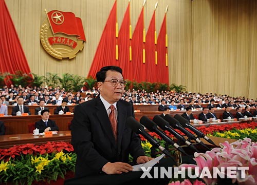 6月10日,中國共產主義青年團第十六次全國代表大會在北京人民大會堂開幕。中共中央政治局常委李長春代表黨中央致祝詞。新華社記者李學仁攝