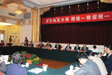 2004年6月14日,中國和平統一促進會與以張貴龍為團長的老撾中國和平統一促進會代表團在北京舉行“反‘臺獨’反分裂 促統一”座談會。全國人大副委員長、中國和平統一促進會會長許嘉璐出席座談會并發表講話。