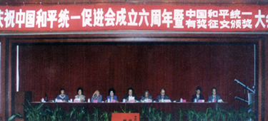 1994年9余人19日,慶祝中國(guó)和平統(tǒng)一促進(jìn)會(huì)成立六周年暨中國(guó)和平統(tǒng)一有獎(jiǎng)?wù)魑念C獎(jiǎng)大會(huì)在京舉行。
