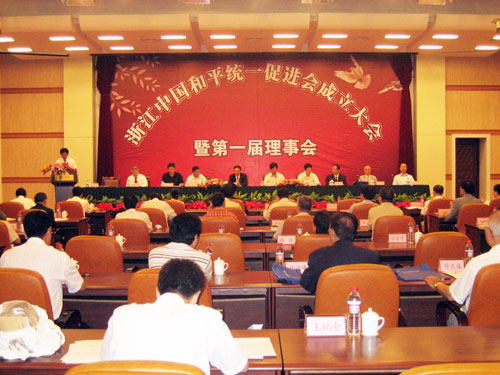 會議審議通過了《浙江中國和平統一促進會章程》,選舉了第一屆理事會會長、執行副會長、副會長、秘書長、常務理事等。中共浙江省委副書記夏寶龍當選為第一屆理事會會長。各民主黨派省委會和省工商聯的負責人等出席大會。