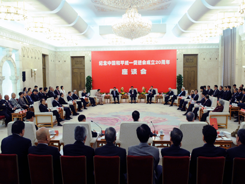 紀念中國和平統(tǒng)一促進會成立20周年座談會27日在人民大會堂舉行。