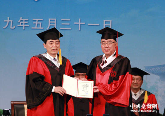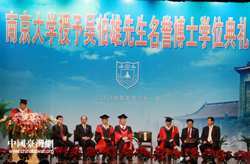 中國臺灣網(wǎng)5月31日消息 今天上午9時15分,南京大學授予中國國民黨主席吳伯雄法學名譽博士學位典禮在南京大學大禮堂舉行。