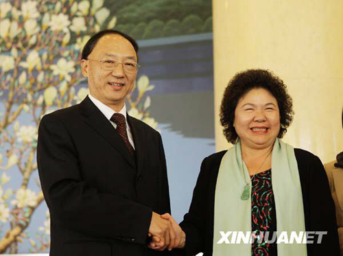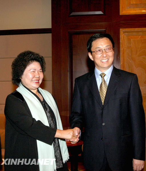 5月22日,中國奧委會主席劉鵬在北京會見高雄市長陳菊。新華社記者 邢廣利 攝