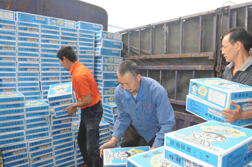 旺旺集團在緊張搶運捐獻的物資