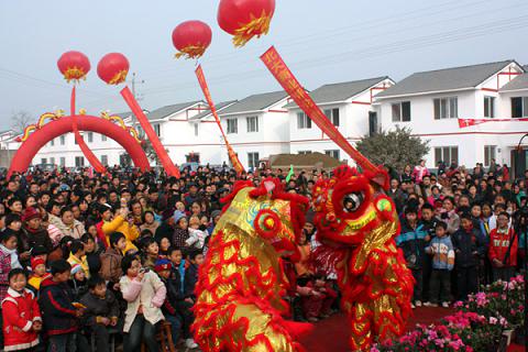 1月19日方碑村185戶群眾集體搬進新房喜慶場面
