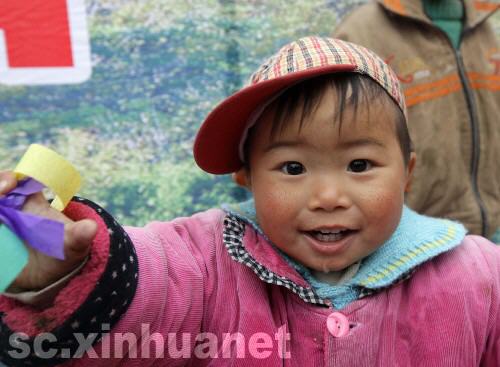 4月17日,一名小朋友在開工儀式現場玩耍。新華社記者邢廣利攝