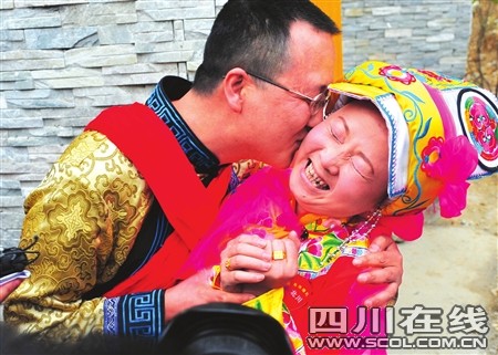 40歲的趙欽親吻自己的羌族新娘樸正英