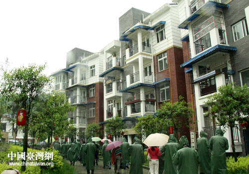 中國臺(tái)灣網(wǎng)5月9日都江堰消息 5月的都江堰,細(xì)雨綿綿。但淅瀝的雨水并沒有阻擋記者們再次前往汶川地震災(zāi)后重建點(diǎn)的腳步。5月9日,來自全國41家媒體的五十余位記者,帶著相機(jī)、DV、筆和紙……走訪了千年古城都江堰的多個(gè)災(zāi)后重建點(diǎn),近距離感受災(zāi)區(qū)的驚人巨變,見證了一幕幕重建的偉大奇跡!