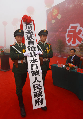四川北川新縣城所在地北川羌族自治縣永昌鎮正式掛牌成立。