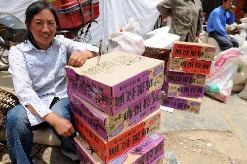 6月2日,北川縣曲山鎮楊柳坪村村民母賢清(左)領到了方便食品。目前,四川省抗震救災指揮部物資組對所有救災物資的運送、接收、分配、發放努力做到“三個一定”:一定要有賬,物資來源、數量、分配方向要登記造冊,做到有賬可查;一定要及時分配,不能積壓;一定要全程跟蹤,防止物資去向不明,保證全部用于受災群眾。新華社記者 宋振平 攝