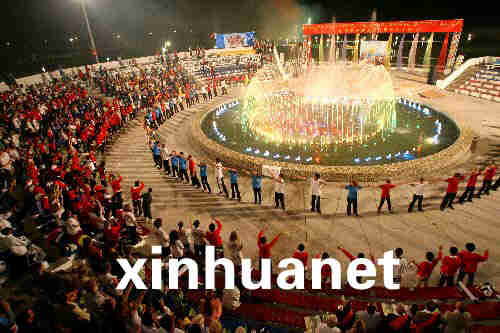 8月4日,在俄羅斯“海洋”全俄兒童中心,來自中國四川地震災區(qū)的孩子們和俄羅斯輔導員共同參加告別晚會。新華社記者鄭悅攝