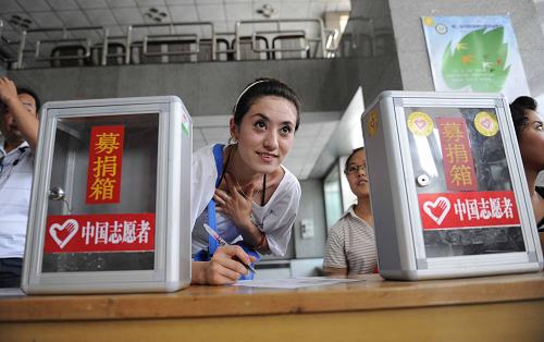 7月12日,在烏魯木齊市團委的招募大廳,一名維吾爾族青年在填寫志愿者申請表。為做好“7·5”事件善后救治、安撫和幫扶工作,自7月10日起新疆志愿者協會秘書處和烏魯木齊志愿者協會開始招募志愿者,從事心理疏導、專業傷員護理等工作。連日來,各族群眾通過現場和電話方式踴躍報名,截至12日中午12點,報名人員已經接近3000人。新華社發(江文耀 攝)