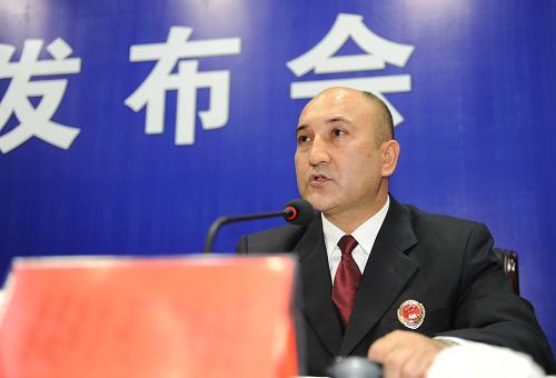 8月4日,烏魯木齊市人民檢察院檢察長吾提庫爾·阿不都熱合曼在新聞發布會上通報情況。當日,吾提庫爾·阿不都熱合曼在烏魯木齊舉行的新聞發布會上宣布,截至8月3日,經檢察機關嚴格依法審核、查證,烏魯木齊“7·5”事件首批83名犯罪嫌疑人被批準逮捕。 新華社記者 沙達提 攝